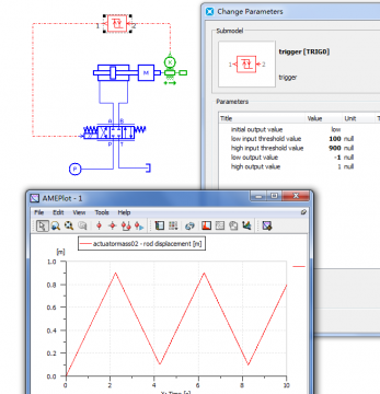 AMESim怎么做行程控制,比如一个液压缸,到某个位置正向,到某个位置反向,也就是行程开关之类的。
