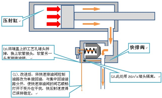 如不想改成外泄(会增加一根回油管),也简单,加大出口通径,加大进出口的压力差即可。或拿掉快排插装阀的弹簧。