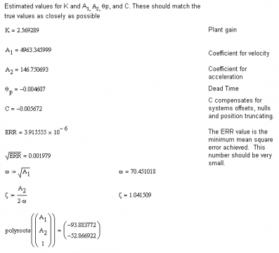 In practice, unless there are specific numerical variable, complex formulas are useless. Mechanical and hydraulic design staff almost never to use motion controller for debugging and optimization provide variable values. A good programmer will use his code written as document files, so that other people understand how the system works. But the mechanical and hydraulic design rarely provide such documentation in the hydraulic circuit design is explained in the package provides is very small. Do debugging optimized motion controller who usually must find the best value controller gain through trial and error, trial. By using the open-loop control signal and recording the hydraulic actuator and load-induced response, it is possible to find a simple model. BRIEF SysIdB0.png shows the data of the function of the control signals collected. The first 2 columns and 3 columns is the location of the data, the first 4 column is millivolt signal to the control unit.