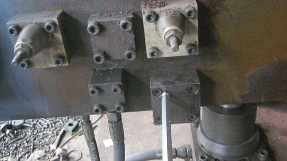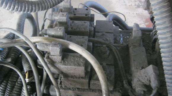 最让我不可思议的就是,我指处的这两根软管,是系统油往阀板去的:第一,系统排量不过150升,弄两根软管干嘛。第二,软管接到阀板上好了,不,有个升降缸,活塞杆连在阀板上,他把升降活塞杆掏空,系统软管往活塞杆里接,通过活塞杆,再往阀板去,八成还是学的意大利烂设计,我想不通呢,太有才了。