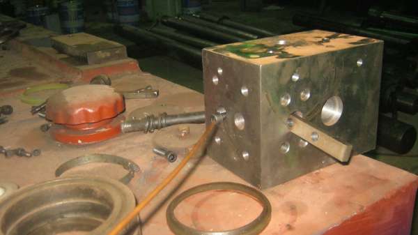 就是这样一个简单的阀板,低压油从中间进去,从右端翻过低压阀回油箱,从左端翻过单向阀汇入系统,都设计不好。