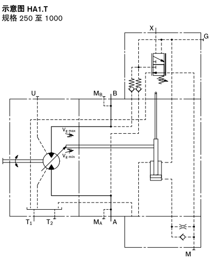 装甲车 发表于 2014-7-24 21:14 HA1或HA2系列,只要X口加先导油,马达排量就变成最大或最小。