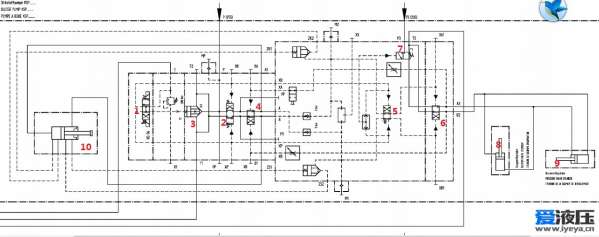 总结:假设油缸10伸在极限位置,阀1下得电,油缸10开始缩回,ZK2开,ZS2关,油缸8,9不动作。当10缩到一定位置,ZK2得到先导油后,8缩回,9伸出;