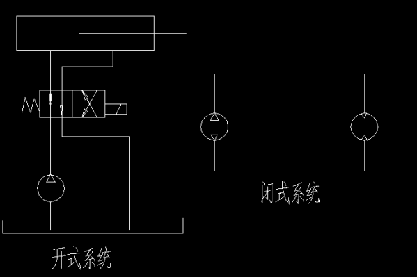 开式回路一般油液经过油箱循环工作;闭式回路油液一直在管路里循环工作,有的系统中有补油泵和油箱。