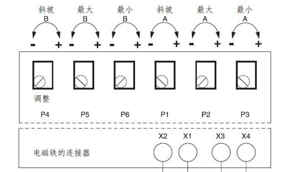 您这个就是斜坡A同时调节电磁铁A的上升下坡和下降坡, B也相同。也就是同一电位器调节上升和下降,那上升时间和下降时间只能是一样的了?