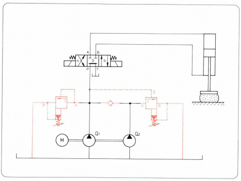 如果是恒功率,达到压力关一个泵,速度会减半。功率消耗也减半,若果是恒压 ...