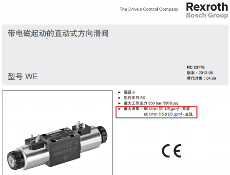 力士乐6通径换向阀最大通流能力可远不止25lpm,压降也达不到1.8MPa,但各种机能不一样的: