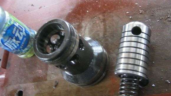 就是油穿过增压活塞杆里的内置单向阀,去推主缸,当主缸打到头时,会产生两个变化,一是主缸及增压缸的油压会急剧升高(两缸共用一股油),导致增压活塞克服增压缸前腔背压(增压缸前腔装了个溢流阀,可用背压方式调增压力),产生增压。
