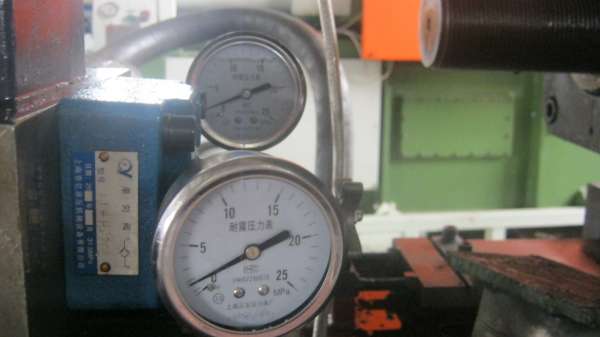 我们的机器,高低压双联叶片泵,低压排量120升每分钟,高压排量40升每分钟。在卸荷时,低压由电磁溢流流阀卸荷。高压由比例溢流阀卸荷。卸荷时,台台机压力表不能归零,上面是高压表,下面是低压表。