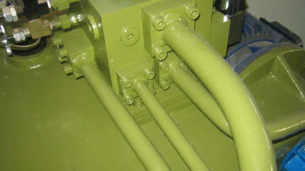 所有的油管,一律用法兰连接,你再看红机,一律是管接头,降低了成本,减少了自制件。为什么滥用法兰,老式机的传统嘛,北方机继承之,而红机是力劲机,是力劲机上不多的几个优点之一。