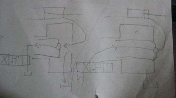 图5,插装阀内腔如接P(储能器),相当于把进口接进单向阀腔,则此阀关闭,如电磁阀换向,把缸接到单向阀后腔,则相当于把出口接进单向阀腔,则插装阀开启。这个就是调节插装阀后腔油,是引自出口还是进口,实现插装阀启闭,当然,最好把T孔接到油箱,而不是缸里。 |