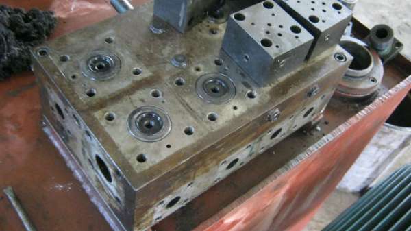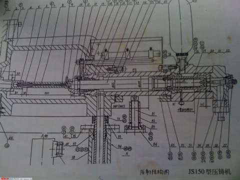 大零件分体,一是压射储能器放机座上,与缸分体。二是,缸结构,干成四段分体:压射缸,压射后缸盖,增压缸,增压后缸盖,导致衔接件多,外观它妈一段圆,一段方,加之油管不能从阀板内部连接,搞成外部明管,更加杂乱。