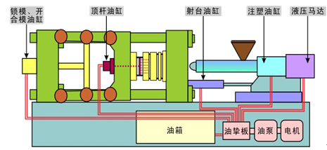 注塑机的头板可能是由四耳式大缸演化来,下图明显有四个耳朵。注塑机头板的工况呢,下下图,装射台油缸的那个是头板,是夹模具的,头板和四根大杠也存在连接方式,和液压机大缸同。