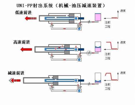 我又没研究过工程机械,油路都没看过,你叫我用简单的机械方法把问题解决,我做不到(要三一真是把我请去,那点问题我未必解决不了)。我只是说明方法,反对乱用伺服等狗屁装逼。可以举个例子,压铸机缸速度五米,在液压上这是很快的速度了,动能冲击过大,高端机用穆格的伺服阀刹车,千分之几秒就要把缸速降下来,那一个阀四十万。日本宇部有个简单的刹车办法,如下图——